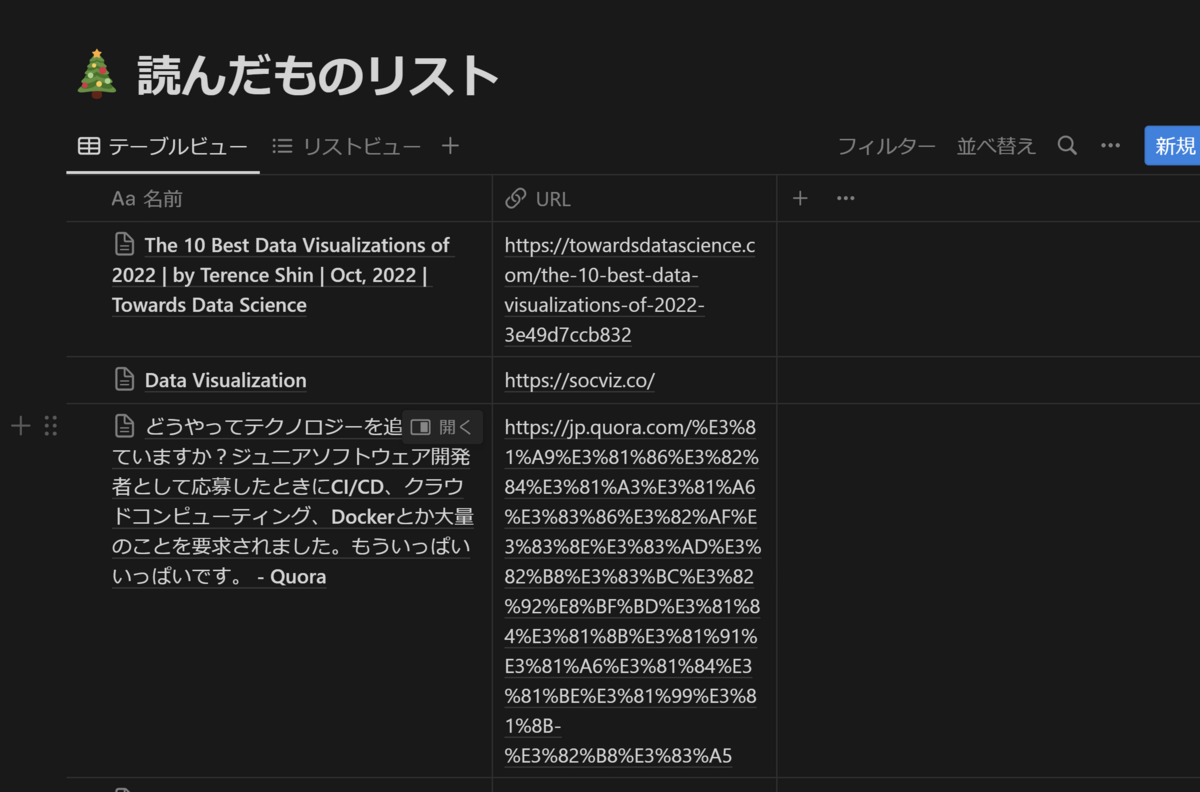 Notionにデータベースがある