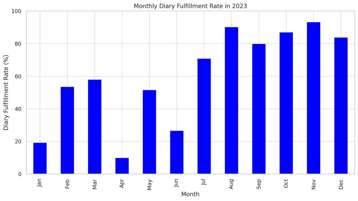 月毎の日記充足率は以下のようになった。